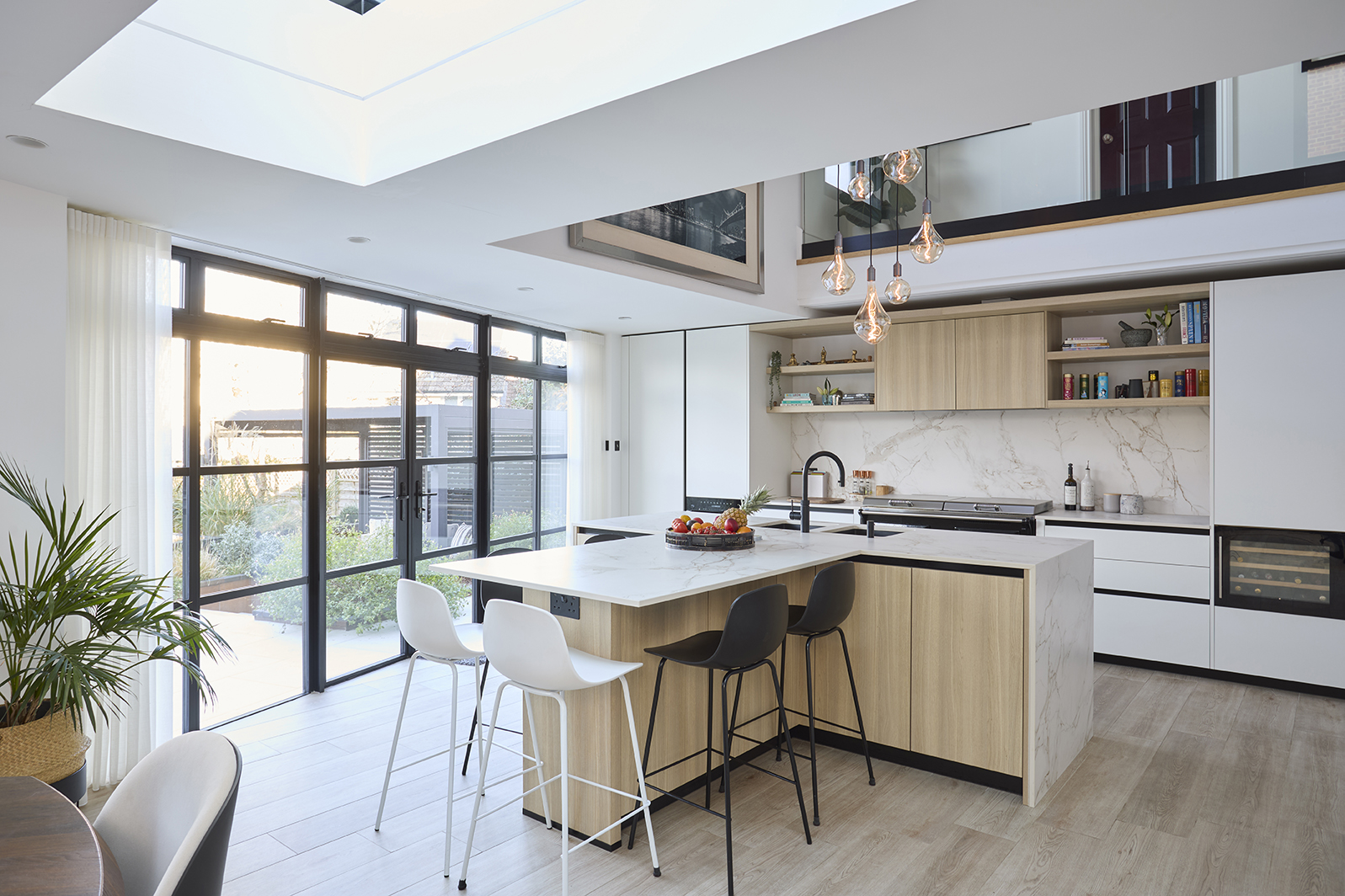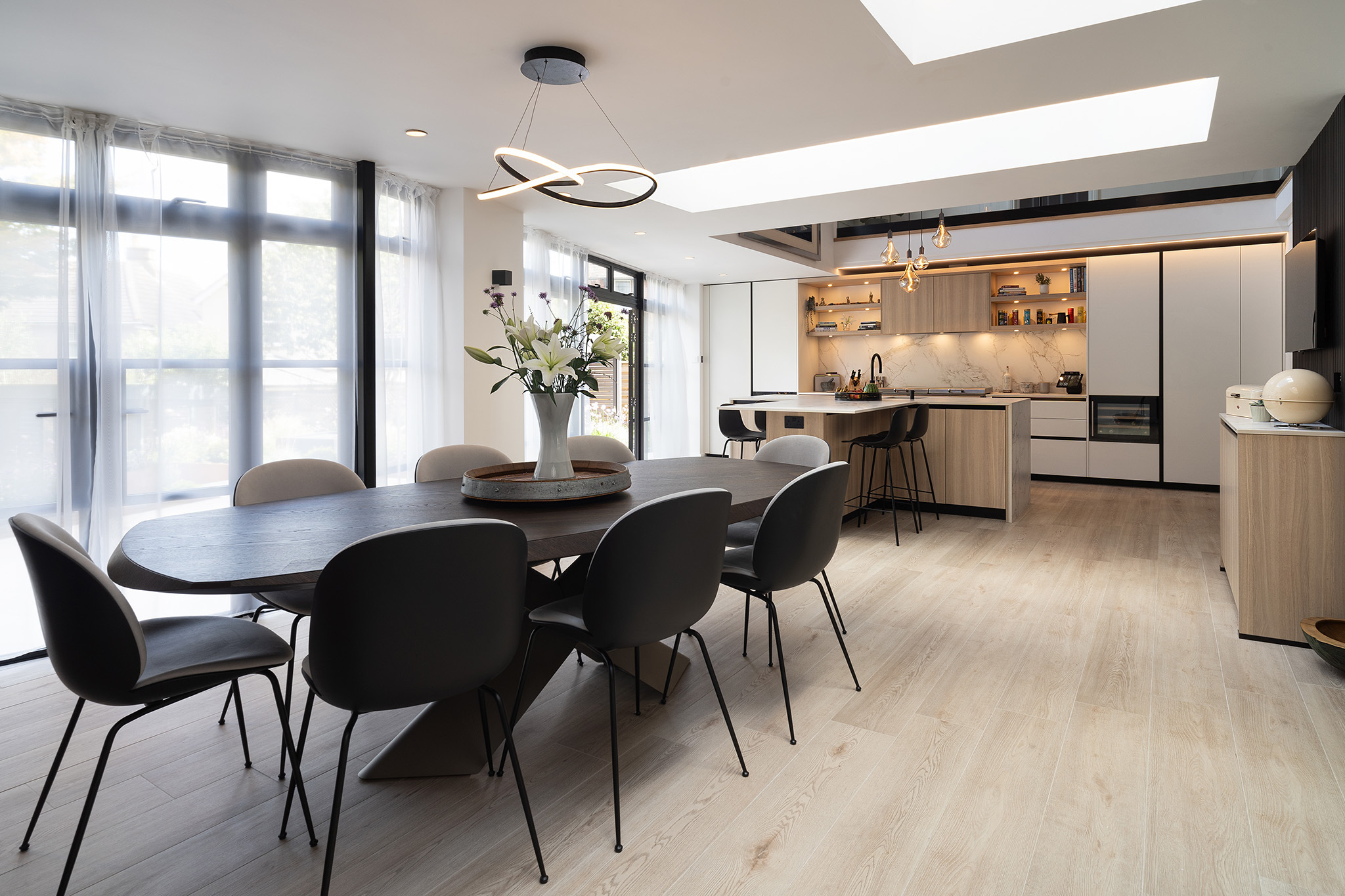 Jorges Salman Architects was appointed to extend and refurbish a period property close to a conservation area within Redhill. This substantial property was modernised, extended, to exceed minimum thermal requirements and provides modern living spaces for the whole family. Collaboration with landscape designer Kitti Kovacs helped to create a harmonious garden which flowed and complemented the architectural additions and extensions to the property. Kitchen design and installation by RDO Kitchen Studio based in Reigate, provided a beautiful modern addition to the double height kitchen space and further enhanced the overall contemporary feel of the lower ground floor area as a whole.